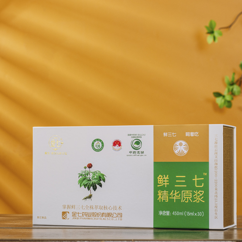 【注意事項(xiàng)】三七須根每日最大食用量以干品計(jì)為1g,三七花每日推薦食用量為1g,三七莖葉每日推薦食用量為1g。本品如有少量沉淀屬于正?,F(xiàn)象, 食用前請搖勻。