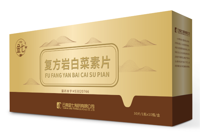 本品每片含巖白菜素125mg及馬來酸氯苯那敏2mg。巖白菜素是從新疆虎耳草科植物厚葉巖白菜提煉精制得到的異香豆精類化合物。對慢性支氣管炎具有良好的鎮(zhèn)咳、祛痰作用。馬來酸氯苯那敏具有較強的組胺H受體阻斷作用可減輕過敏引起的呼吸道其他癥狀,對中樞神經系統(tǒng)也有輕度抑制作用。