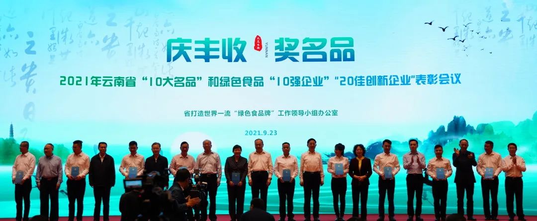 9月23日,以“慶豐收·獎(jiǎng)名品”為主題的2021年云南省“10大名品”和綠色食品牌“10強(qiáng)企業(yè)”“20佳創(chuàng)新企業(yè)”表彰會(huì)議在昆明市云南海埂會(huì)堂召開(kāi)。
