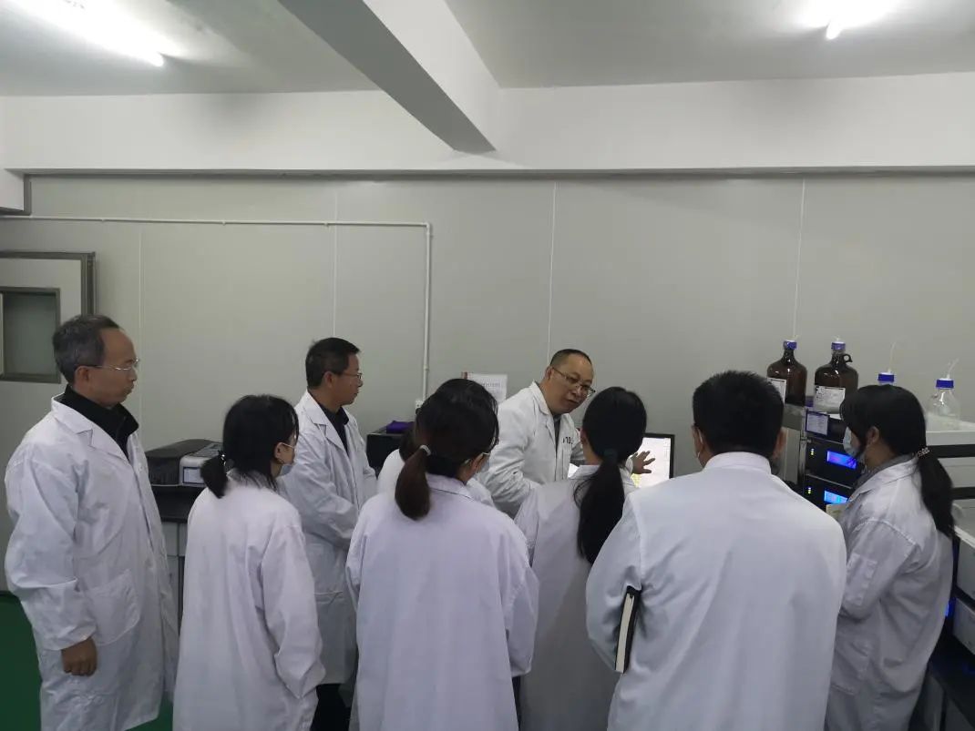 實(shí)地考察中,王朝梁副院長(zhǎng)專家團(tuán)隊(duì)與公司總工程師和肇有、質(zhì)量總監(jiān)賀榮等科研人員現(xiàn)場(chǎng)交流了三七綜合利用及相關(guān)新產(chǎn)品的開發(fā)應(yīng)用等實(shí)際問(wèn)題,并深入公司科研中試平臺(tái),實(shí)地了解產(chǎn)品研發(fā)、試制等情況,著重對(duì)公司檢測(cè)中心質(zhì)量體系建設(shè)、質(zhì)量控制、檢測(cè)操作等方面進(jìn)行了指導(dǎo)。