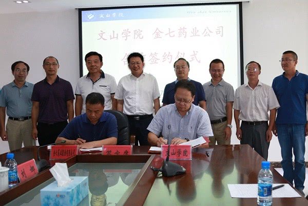 為了三七產(chǎn)業(yè)鏈持續(xù)健康發(fā)展,促進(jìn)當(dāng)?shù)亟?jīng)濟(jì)發(fā)展,響應(yīng)國家精準(zhǔn)扶貧及《國務(wù)院辦公廳關(guān)于深化產(chǎn)教融合的若干意見》,深化產(chǎn)教融合,促進(jìn)教育鏈、人才鏈與產(chǎn)業(yè)鏈、創(chuàng)新鏈有機(jī)銜接,提高教育質(zhì)量、擴(kuò)大就業(yè)創(chuàng)業(yè)、推進(jìn)經(jīng)濟(jì)轉(zhuǎn)型升級(jí)、培育經(jīng)濟(jì)發(fā)展新動(dòng)能,全面提升人力資源質(zhì)量。在云南省文山州政府的推動(dòng)下,7月17日下午,文山學(xué)院三七研究院和金七藥業(yè)股份有限公司就深化務(wù)實(shí)合作、加強(qiáng)校企交流實(shí)踐等達(dá)成了一系列重要共識(shí),雙方在文山學(xué)院簽訂了校企戰(zhàn)略合作協(xié)議。