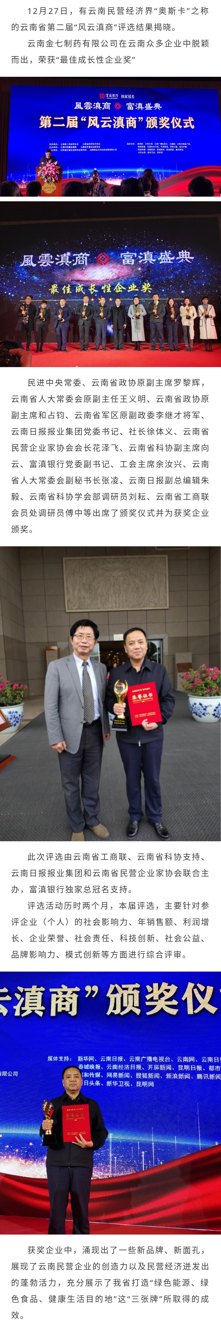 【資訊】云南金七制藥在第二屆“風云滇商”評選中榮獲最佳成長性企業(yè)獎