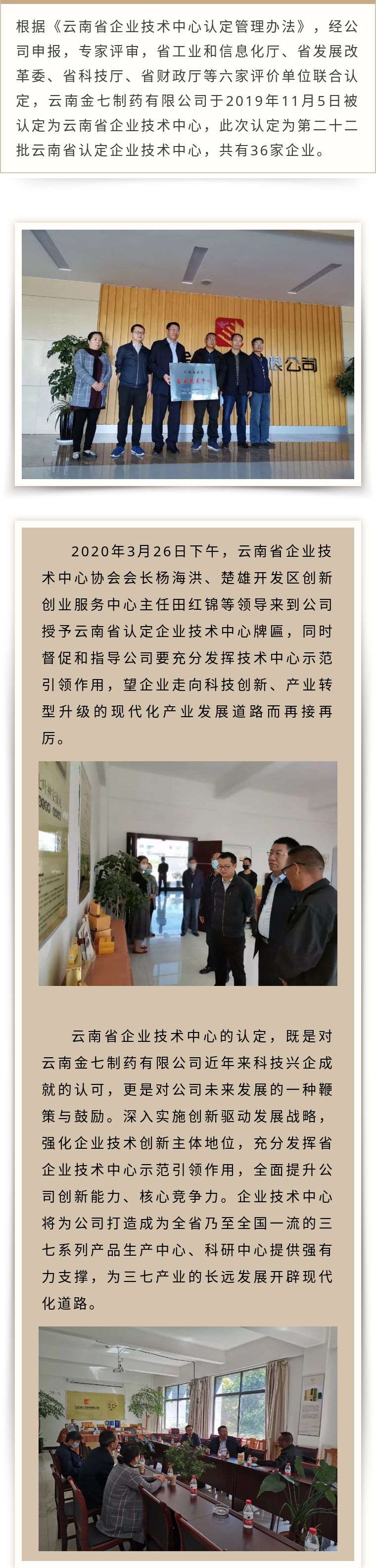 【資訊】云南金七制藥有限公司喜獲“云南省企業(yè)技術中心”授牌