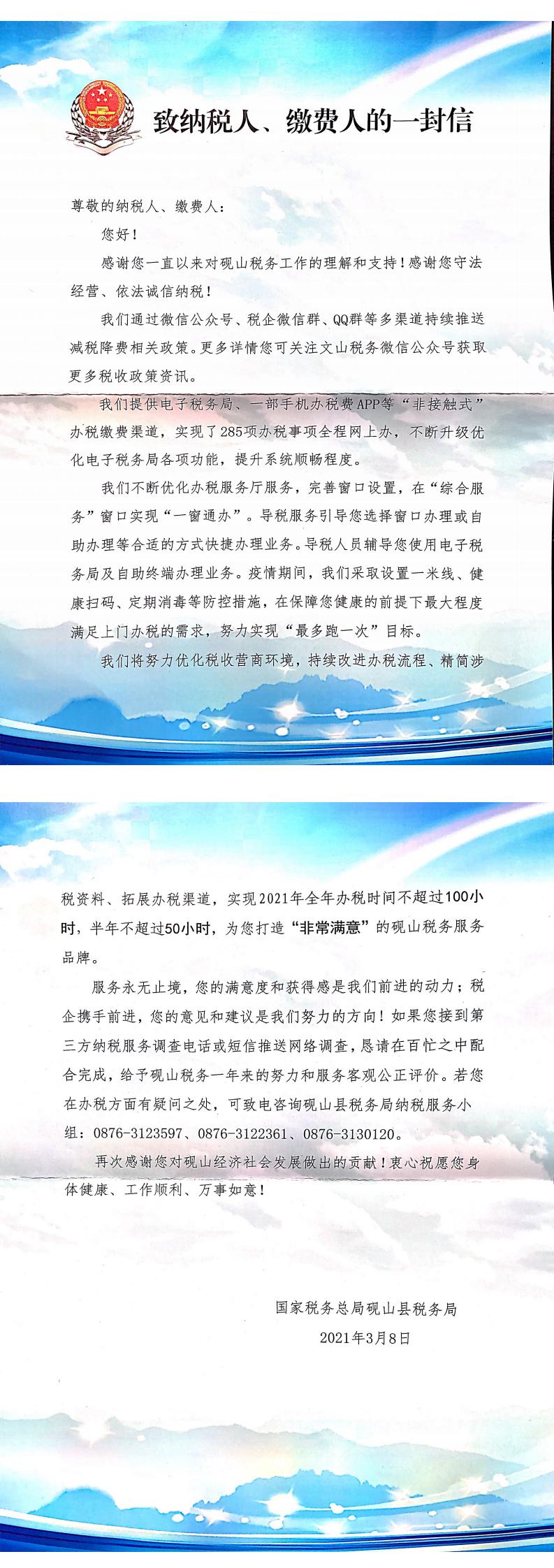 金七藥業(yè)股份有限公司因守法經(jīng)營(yíng)、依法誠(chéng)信納稅收到硯山縣稅務(wù)局的感謝信。