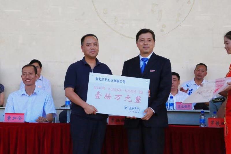 李炳澤校長(zhǎng)向捐資助學(xué)企業(yè)贈(zèng)送捐贈(zèng)牌匾,并與企業(yè)代表一同向榮獲“校長(zhǎng)特別獎(jiǎng)”的楊愛(ài)敏等64名2019級(jí)新生頒發(fā)了證書。