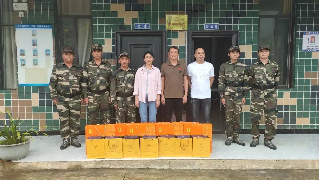 馬關(guān)縣都龍鎮(zhèn)東瓜林村206聯(lián)防所常務副所長 張斌:“中秋和國慶佳節(jié)馬上就到,非常感謝你們帶著這些禮品來看望我們幾個強邊固防的人員?!?/section> 麻栗坡縣天保農(nóng)場黃牛堡聯(lián)防所副所長 馮光才:“金七公司的職工來走邊關(guān),來到我們黃牛堡聯(lián)防所,看望我們這些邊疆守邊人,非常感謝,激動了說不出話了?!?/section> 金七藥業(yè)股份有限公司黨支部書記 唐金秀:“金七藥業(yè)股份有限公司良好的發(fā)展環(huán)境離不開守邊人的辛勤付出。今天我們帶著公司的拳頭產(chǎn)品來看望大家,希望能夠給大家?guī)硪唤z溫暖。中秋佳節(jié)即將來臨,我們提前預祝全體守邊人,中秋快樂、闔家幸福。”